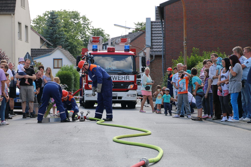 Ein besonderer Dank gilt erneut der Jugendfeuerwehr Lövenich, die mit Ihrer Klettergruppe, den „Geckos“ einen Kletterparcours an einer Drehleiter aufgebaut und betreut haben. Viele der jüngeren Gäste hatten sichtlich Spaß daran, gut gesichert in die Höhe zu klimmen.