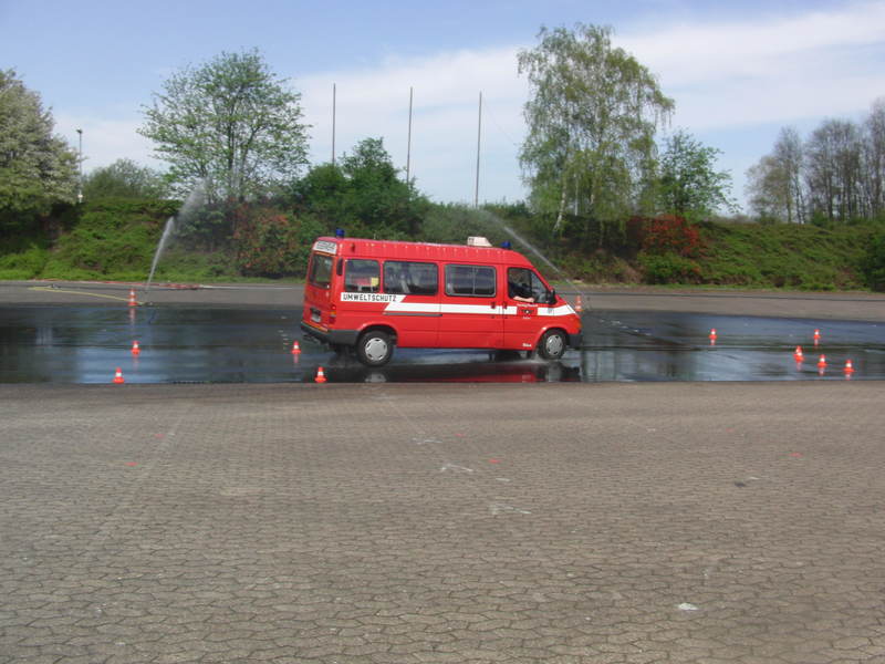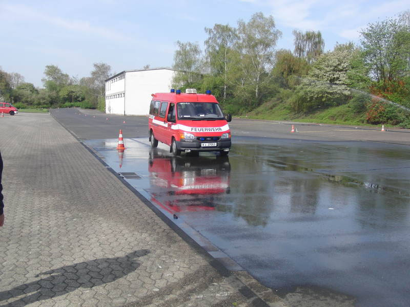 Bremsübungen mit dem Mannschaftstransportfahrzeug unserer Löschgruppe. Was da so einfach aussieht, will dennoch richtig beherrscht werden.