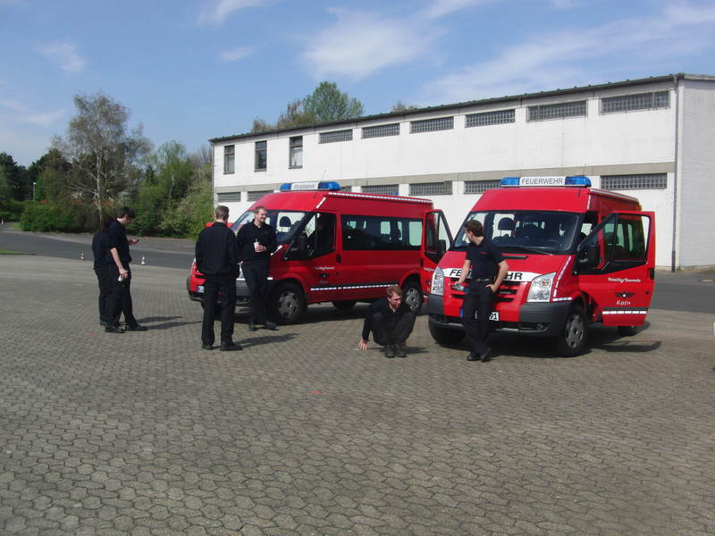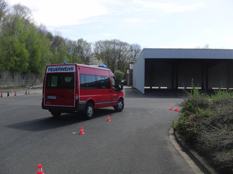 Am Samstag den 9. April machten wir uns mit insgesamt vier Kameraden auf zur Feuerwehrschule in Weidenpesch, wo wir zuerst eine etwa zweistündige Einweisung zum Thema erhielten. Neben dem Kammschen Kreis wurden dort auch Dinge angesprochen, die seit der Führerscheinprüfung längst vergessen waren. Im Anschluss an die Theorie folgte der praktische Teil, der auf dem Gelände der Lüttich-Kaserne in Köln-Longerich abgehalten wurde.