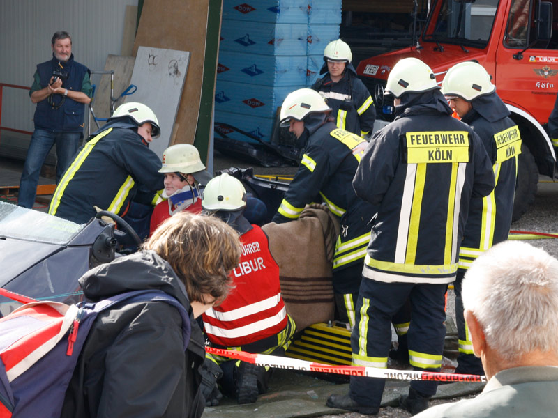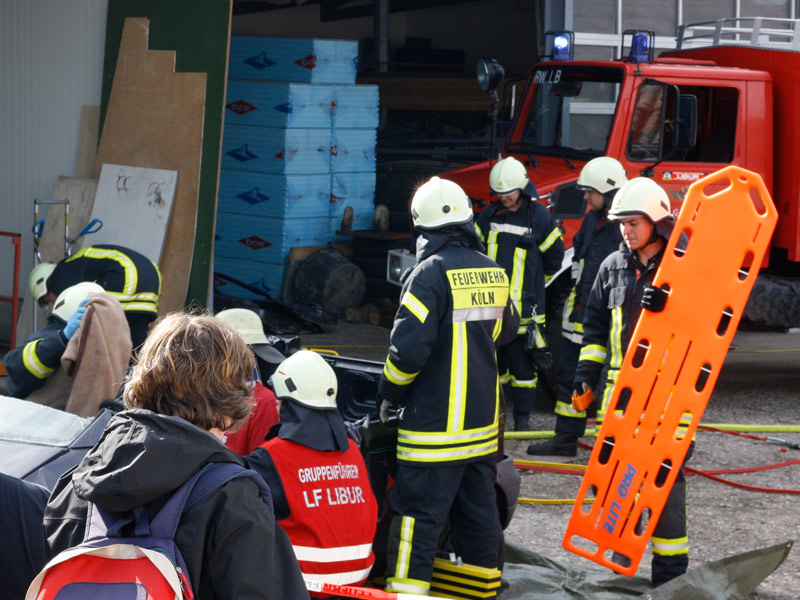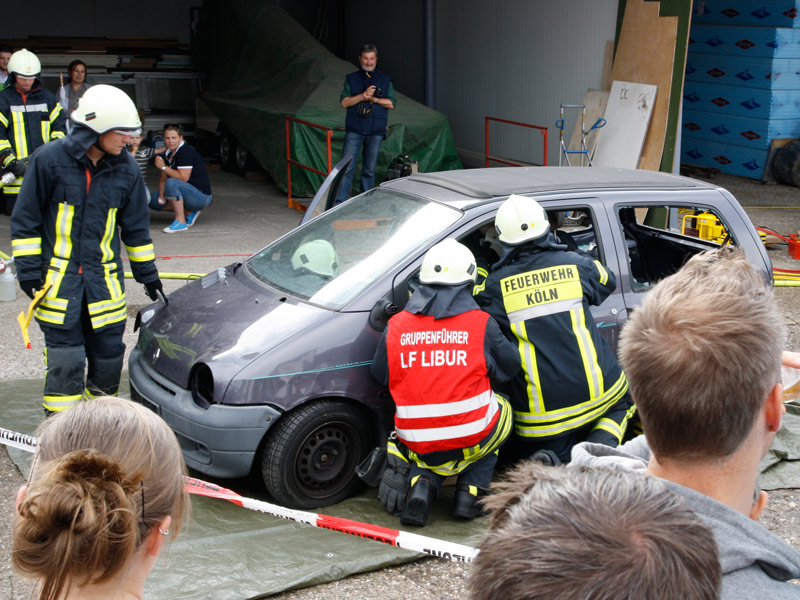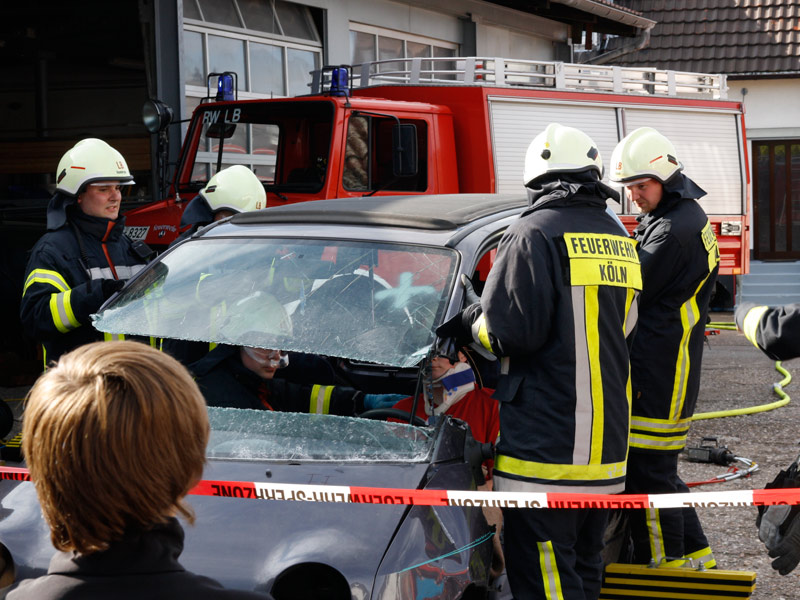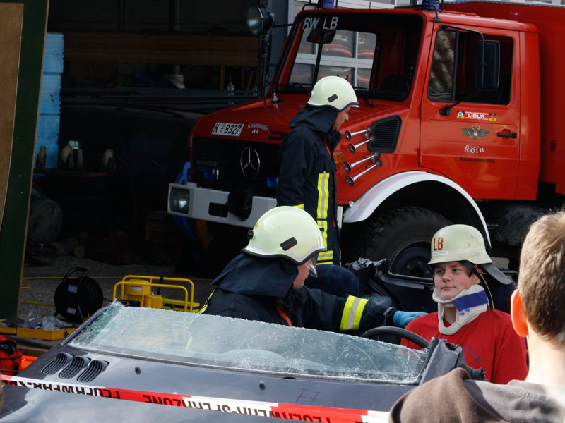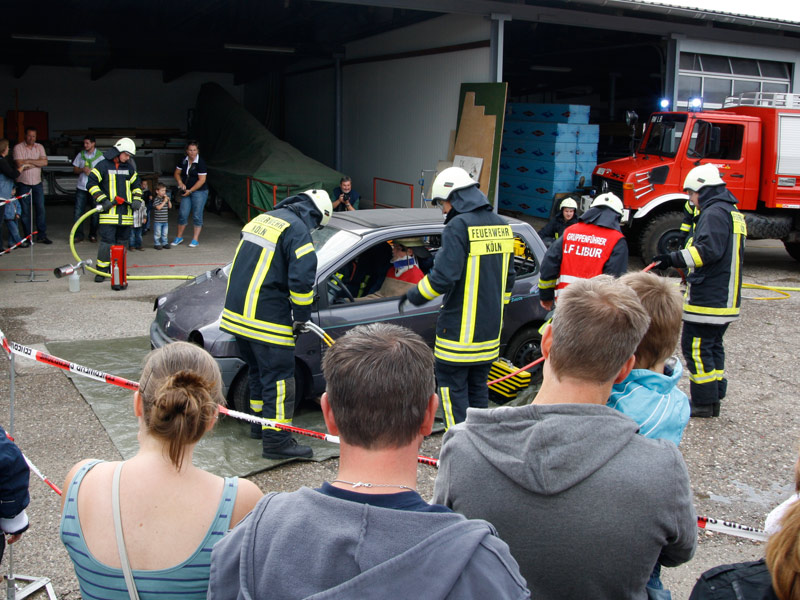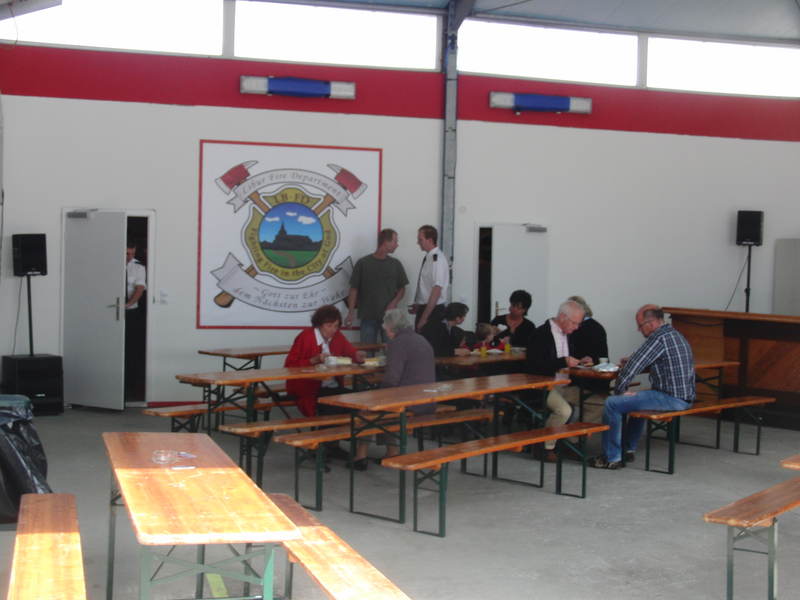 In der Cafeteria gab es zahlreiche selbstgebackene und sehr leckere Kuchen.Bei einer Schauübung, die wegen eines kräftigen Regenschauers nur mit etwas Verspätung beginnen konnte, zeigten die Kameraden der Löschgruppe Libur, was sich mit dem