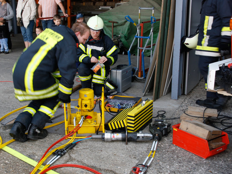 Feuerwehrarbeit findet bei jedem Wetter statt, bei einem Tag der offenen Tür ist das nicht ganz so sicher. Trotz eines kurzen, aber heftigen Regengusses am Nachmittag war unser Feuerwehrfest am Samstag den 18. Juni 2011 dennoch ein ansehnlicher Erfolg.Es kamen viele Gäste, um sich über die Arbeit der Feuerwehr, die Fahrzeuge, die technische Ausrüstung und über den vorbeugenden Brandschutz durch Rauchmelder zu informieren. Auch unsere neue Umkleide fand regen Zulauf: Ständig verschwanden neugierige Besucher durch die beiden Türen, um den