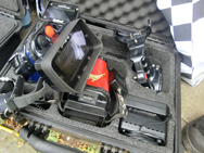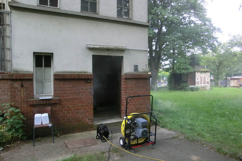 Praktische Ausbildung an der Wärmebildkamera: Ein ganz neues Terrain für Kräfte der Freiwilligen Feuerwehr in Köln.In einer weiteren Einsatzübung auf dem Gelände der Deutz AG konnten wir dann nochmals einen Brandeinsatz proben. Arbeiter, die bei Schweißarbeiten in einem Versorgungsschacht versehentlich einen Brand ausgelöst hatten, wurden vermisst. In diesem Szenario arbeiteten wir wieder mit der Löschgruppe Heumar zusammen, die in dieser Übung als erste Einheit an der Einsatzstelle eingetroffen war. Die Mannschaft aus Libur unterstützte daher die Suche nach den Vermissten Personen, indem der Angriffstrupp über einen Seiteneingang bis in den im Keller liegenden Versorgungsschacht vordrang. Auch hier wurde, nachdem der Zugang geöffnet wurde, zügig vorgegangen. Eine der vermissten Personen wurde zu dieser Zeit vom Angriffstrupp Heumar gefunden. Wenig später konnten auch wir bis zur zweiten Person vorstoßen und diese aus dem Gefahrenbereich bringen.