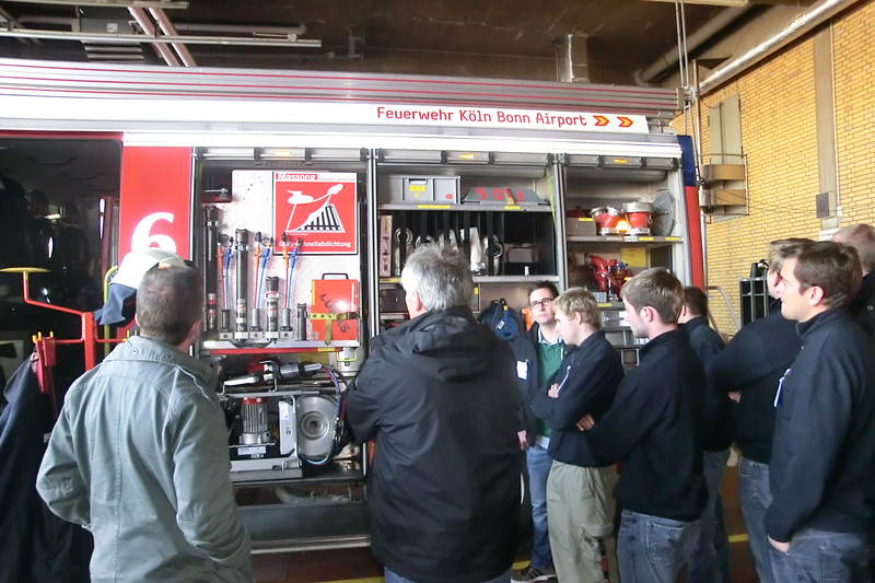 Am vergangenen Samstag stand nach langer Planungszeit der diesjährige Kameradschaftsausflug der Löschgruppe an. Dem voraus gingen etliche Terminvorschläge und viele Planungsgespräche, bei denen unsere beiden Kameraden Thomas Reiter und Pascal Remarque dafür gesorgt haben, dass dieser Ausflug reibungslos vonstatten gehen konnte. Das Wichtigste wollen wir an dieser Stelle mal vorwegnehmen: Die beiden haben uns einen schönen Tag bereitet.Wir starteten um 13 Uhr vom Gerätehaus in Libur, um gegen 14 Uhr die Wache der Werkfeuerwehr des Flughafens Köln/Bonn zu erreichen. Auch wenn der Flughafen noch innerhalb unseres Einsatzbereiches liegt und von uns im Alarmfall binnen Minuten erreicht wird, nimmt die Sicherheitsüberprüfung, die dem nicht alarmmäßigen Einlass auf das Gelände vorangestellt ist, eine Menge Zeit in Anspruch. In der Wache erklärte uns Mike Schlothauer ein paar interessante Dinge zu den dortigen Feuerwehr-Fahrzeugen und den in den letzten Monaten erfolgten Änderungen im Dienstgeschehen.